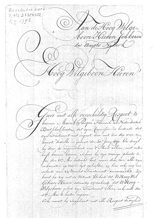Brief Marcel Pasqué aan Ambtsbestuur 1792