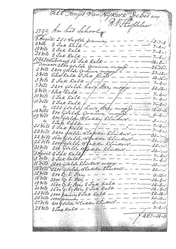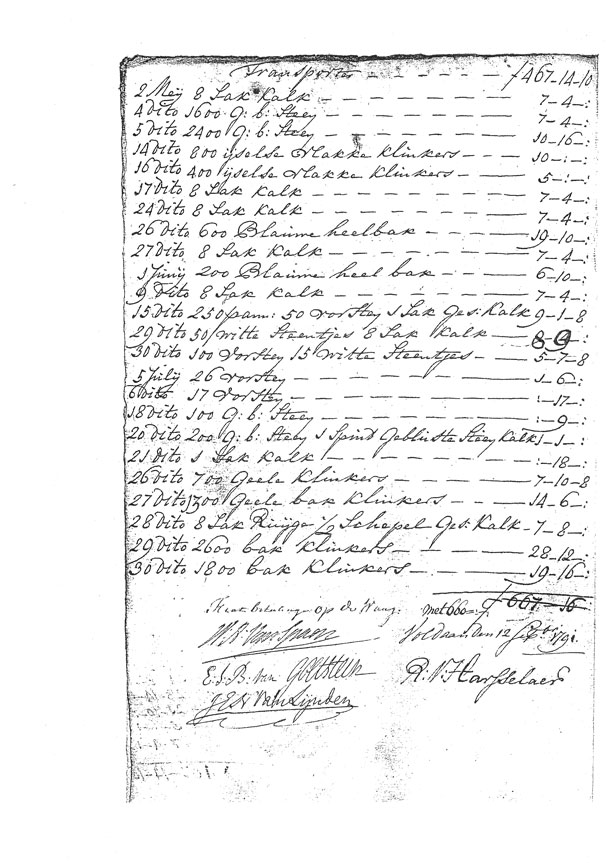 Rekening geleverde bouwmaterialen R.V. Harsselaar